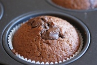 Formę do muffinek wypełnić papilotami. Wlać ciasto. Piec 20 min. w temperaturze