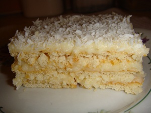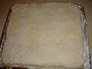 Wierzch posypujemy dużą ilością wiórków kokosowych.