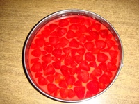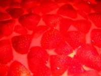 Przygotowuję galaretki, każdą w oddzielnym naczyniu pamiętając, aby rozpuścić je w mniejszej ilości wody niż w podanym na opakowaniu przepisie. Ja na każdą galaretkę szykuję ½ szklanki wody. Myję truskawki, osuszam, odcinam szypułki i kroję je na pół.