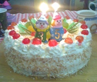 No i zaczynamy. Na przygotowanej paterze układamy pierwszy krążek. Nasączamy lekko ponczem i smarujemy kremem śmietankowym. Powtarzamy tę czynność z drugim krążkiem. Na wierz układamy 3 krążek, który też delikatnie nasączamy ponczem. Odkładamy trochę bitej śmietany a resztą smarujemy wierzch tortu oraz jego boki. Uprażonymi, ostudzonymi wiórkami kokosowymi obsypujemy boki tortu. Z odłożonej bitej śmietany robimy rozetki na wierzchu tortu. Tort ozdobić według własnego uznania.