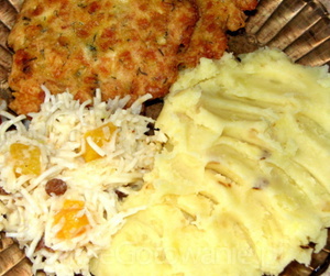 Pierś z kurczaka myjemy i kroimy w drobną kostkę. Przyprawiamy vegetą, solą i pieprzem. Jajka roztrzepujemy i dodajemy makę ziemniaczaną. Powstałą masę jajeczną wlewamy do kurczaka i dodajemy ser, rozgnieciony czosnek oraz koperek. Całośc mieszamy i smażymy na gorącym tłuszczu na złoty kolor z jednej i drugiej strony.