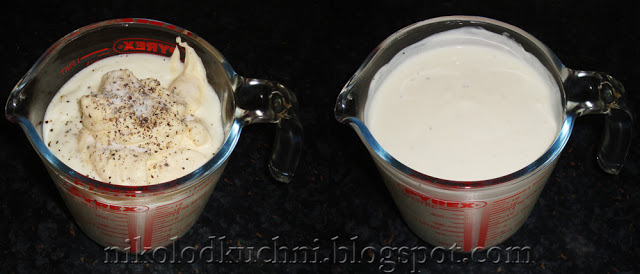 Jogurt wymieszaj z majonezem i dopraw solą oraz pieprzem.